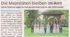 - Lother Schützen sagen ihr Fest abDie Schützengesellschaft Lothe hat sich entschieden, das Schützenfest 2020 abzusagen. Die Coronapandemie hatte uns zu dem Schritt gezwungen. Eine Durchführung des Schützenfestes ist in diesem Jahr nicht möglich.